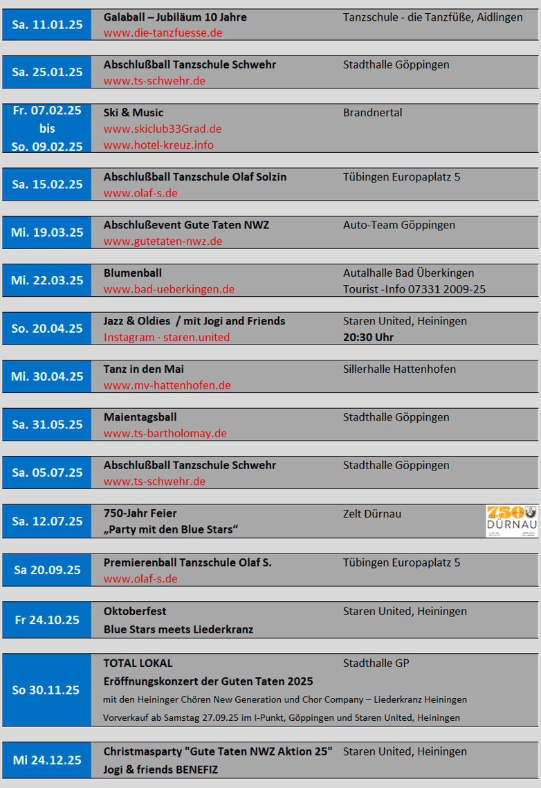 Die BLUE STARS gestalten mit Gespür und Erfahrung den passenden Rahmen für Ihr Fest und sorgen für das unvergessliche Flair einer gelungenen Veranstaltung.